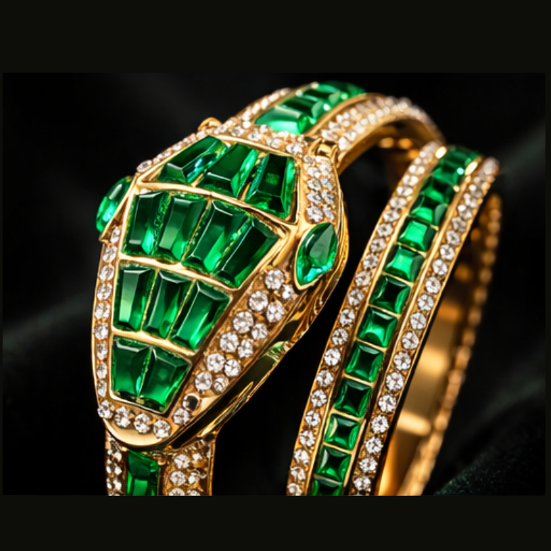 This eye-catching timepiece features a beautiful green dial encased in a golden frame, paired with a unique open snake bracelet that coils around your wrist like jewellery. The bold combination of green and gold gives it a rich, luxurious appeal that instantly elevates any outfit whether you’re stepping out for a party, festival, casual brunch, or evening event.