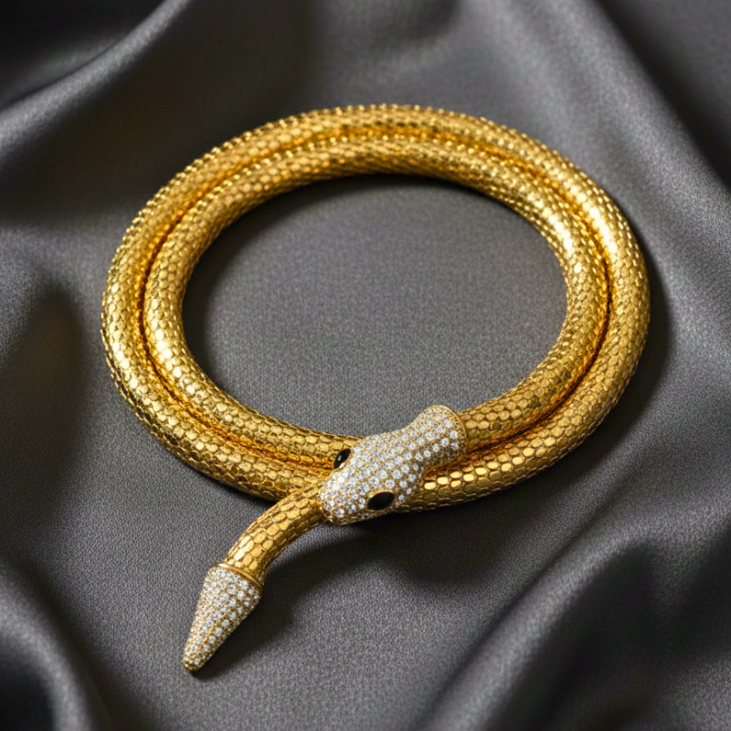 The serpent has long been a symbol of confidence, rebirth, and strength. This design celebrates the modern woman who is bold, stylish, and unapologetically herself. The snake-inspired form wraps around the neck like a statement of power strong yet elegant, daring yet refined.