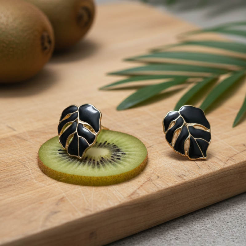 Add a bold and elegant touch to your everyday style with the Rush The Label Black Enamel Leaf Stud Earrings. Designed with a sleek leaf shape and a glossy black enamel finish, these studs bring a modern, classy charm to any outfit.