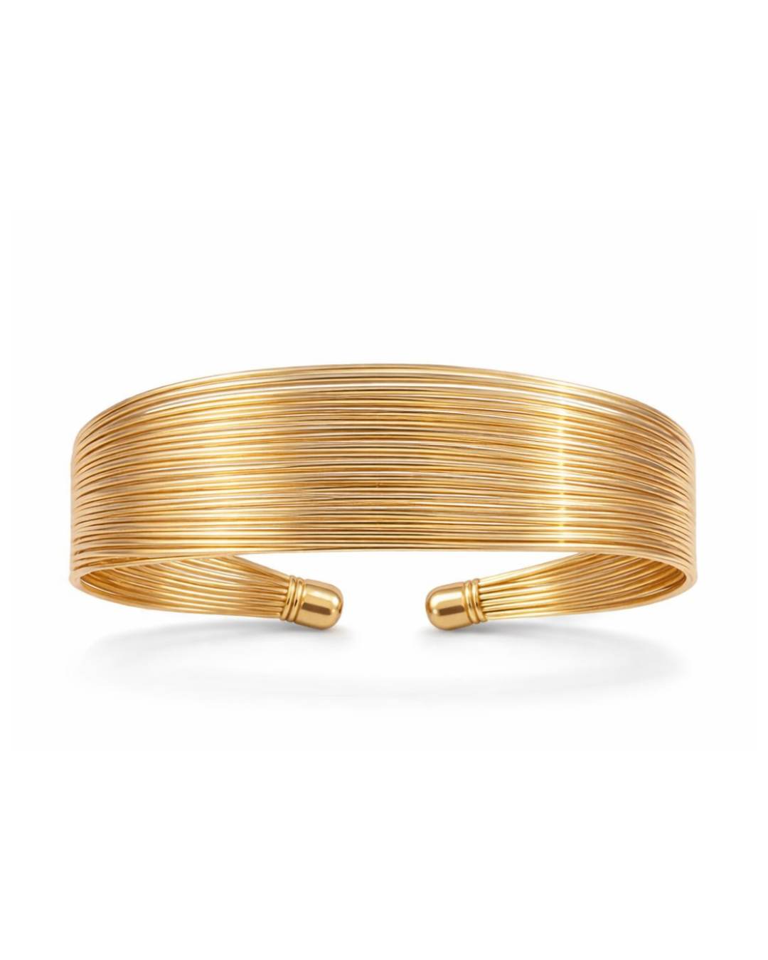 Minimal yet bold, the Rush The Label Gold Plated V Shape Wire Cuff Bracelet is designed for women who love modern, elegant jewellery. The sleek V-shaped open cuff design gives this bracelet a contemporary edge, while the rich gold-plated finish adds a touch of luxury.