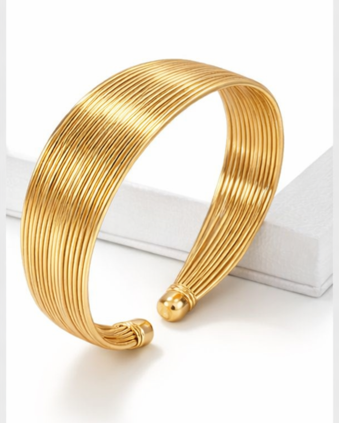 Rush the Label Women Gold Plated V Shape Wire Cuff Bracelet