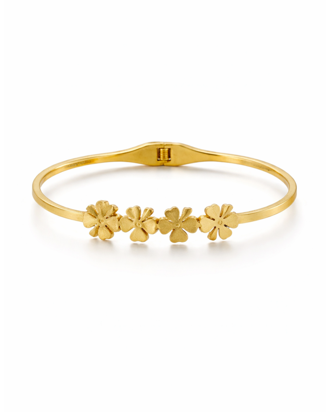 Elegant and timeless, the Rush The Label Women Gold Plated Floral Bracelet is crafted to add a graceful charm to your everyday and festive looks. Designed with delicate floral details and finished in a rich gold-plated tone, this bracelet brings a soft, feminine touch to your style.